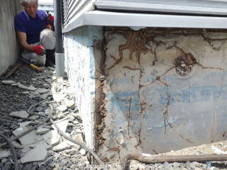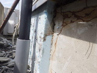 ポーチ柱から侵入後、ベランダ部分にまでシロアリの被害が拡大してしまった